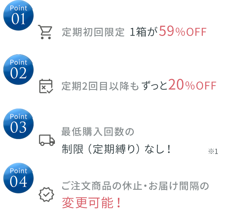 ※お得な定期便とは、30日~60日ごとに商品を自動でお届けする定期コースです。