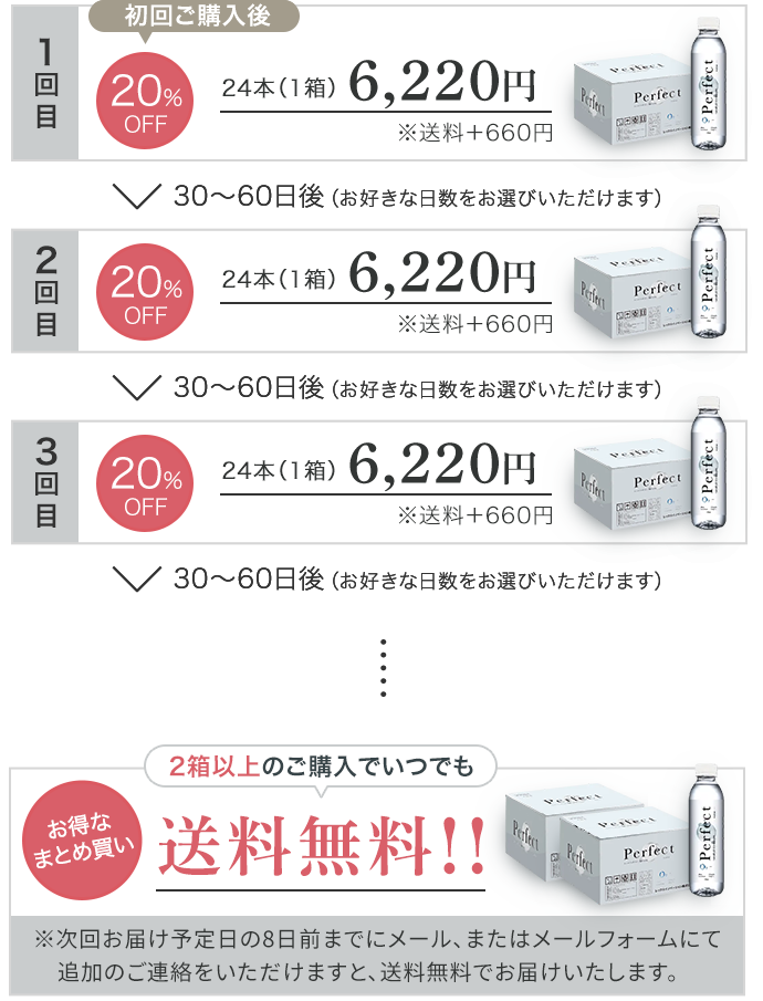 ※2回目以降は1箱(24本)20%OFFの6,220円(税込)でお届けいたします。箱数も自由にお選びいただけます(1箱ご注文の場合は別途送料660円、2箱以上ご注文の場合は送料無料です)。
